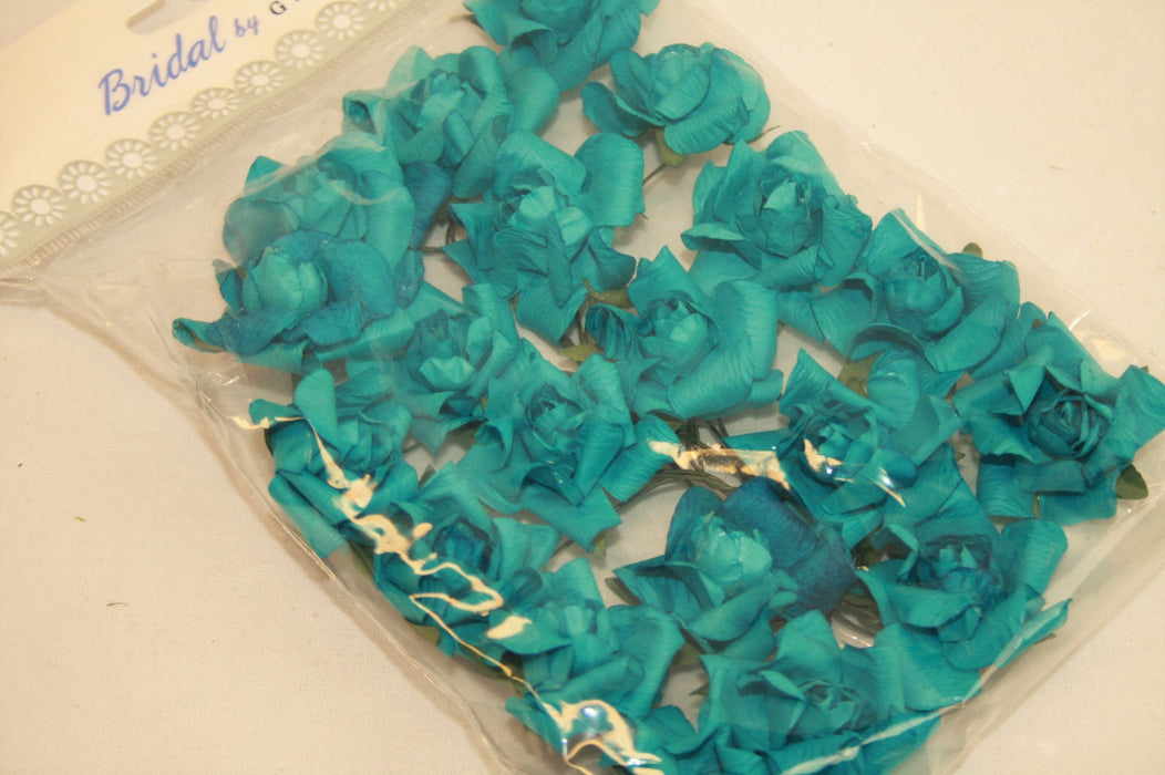 Eye catching teal miniature paper rose heads