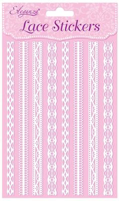 White Patterned Lace Strip Craft Stickers - 12 Strips - White No 01