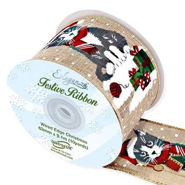 Wired Edge Snow Cat Natural Ribbon 63mm x 9.1m