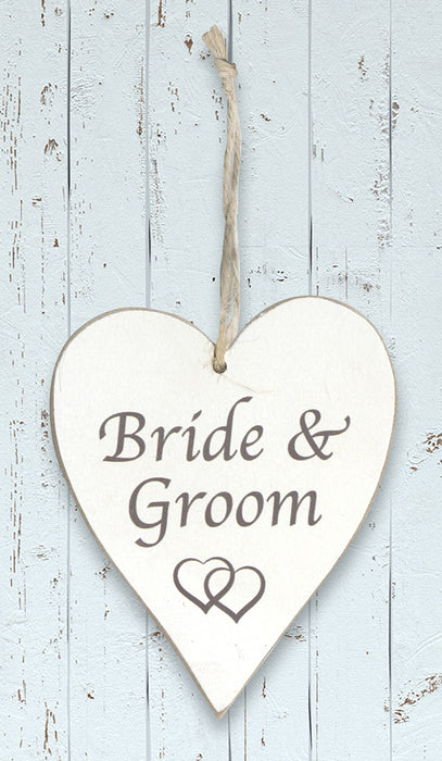 Wooden Hanging Heart 9 x 11cm - Bride & Groom