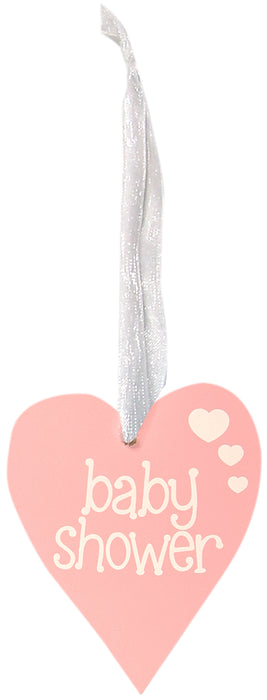 Wooden Hanging Heart 9 x 11cm - Pink - Baby Shower